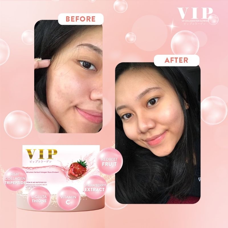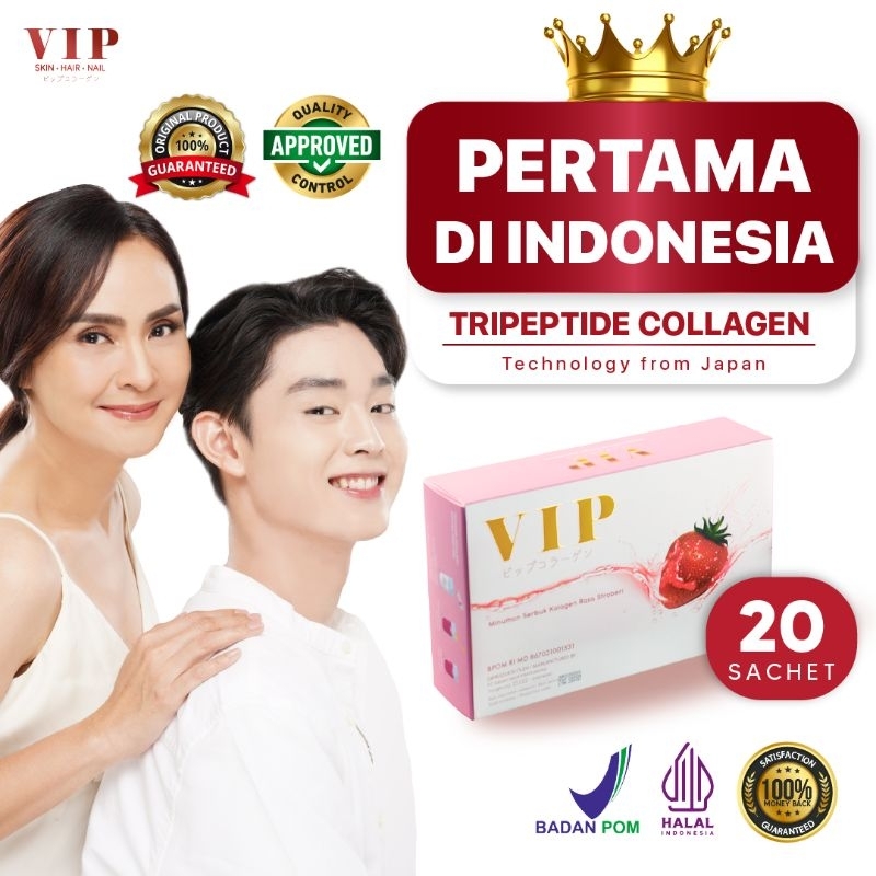 VIP Collagen merupakan minuman Kolagen yang diformulasikan dengan teknologi dari Jepang dengan kandungan utama Fish Collagen Tripeptide yang memiliki penyerapan 3 x lebih cepat. Sehingga dapat memberikan hasil yang maksimal untuk Kesehatan kulit, kuku dan rambut.