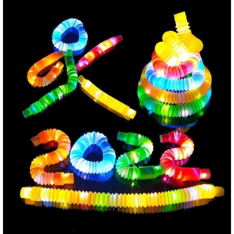 Pop tubes merupakan mainan fidget toys terbaru dan popular dilengkapi dengan lampu LED. Cara bermain dengan menarik dan merapatkan pop tubes dan pop tubes akan menghasilkan suara yang satisfying untuk didengar.