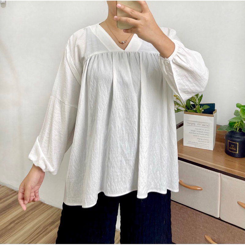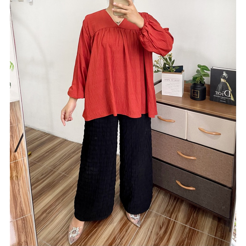 Pakaian Wanita > Atasan > Kemeja & Blouse > VIRLY BLOUSE POLO LINEN || BLOUSE KERAH V