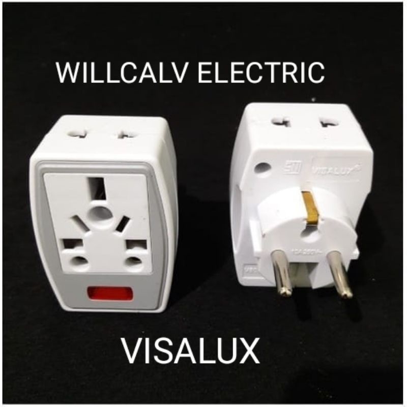 Steker T serba guna kaki 3 visalux model 3 pin terminal kuningan , dilengkapi dengan Lampu indikator DAN sekring pengaman tipe : V7196L tegangan : 250V~ Arus 13A SNI.