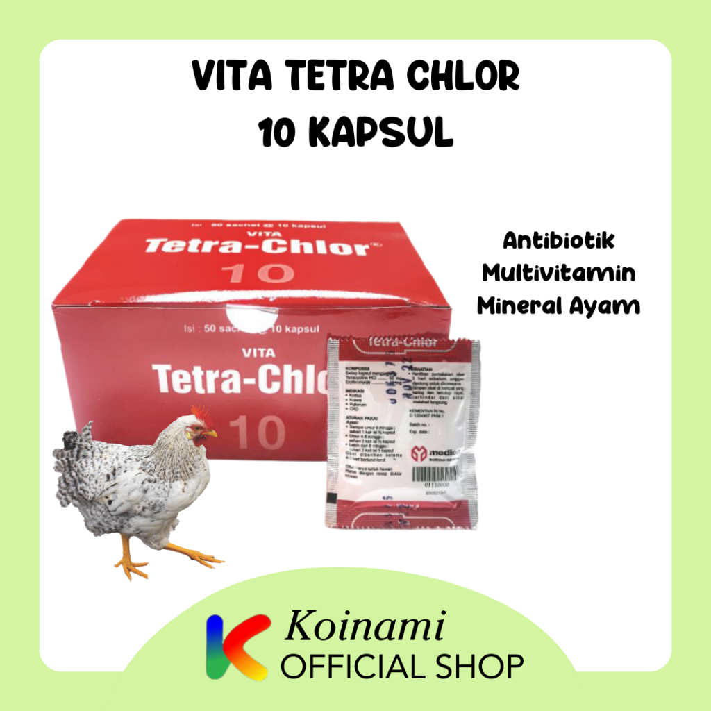 Detail VITA TETRA CHLOR 10 KAPSUL / antibiotik Multivitamin Mineral / obat Ayam / MEDION