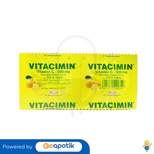 Deskripsi : Untuk pencegahan dan mengatasi defisiensi vitamin C | Komposisi : Mengandung Asam askorbat 250 mg dan Na askorbat 281,25 mg (setara dengan asam askorbat 250 mg) | Dosis : 1-2 tablet hisap sehari, dihisap perlahan-lahan | Indikasi : Untuk pencegahan dan mengatasi defisiensi vitamin C | Perhatian Khusus : NA | Kemasan : Strip 2 tablet hisap | NIE : SD021501851