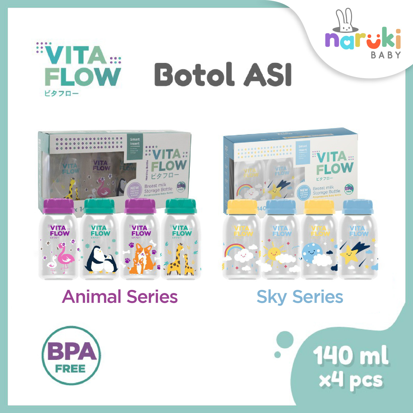 Detail Vitaflow Botol ASI 3in1 PP 140ml isi 4pcs dan 60ml isi 8pcs Botol ASI Vita Flow