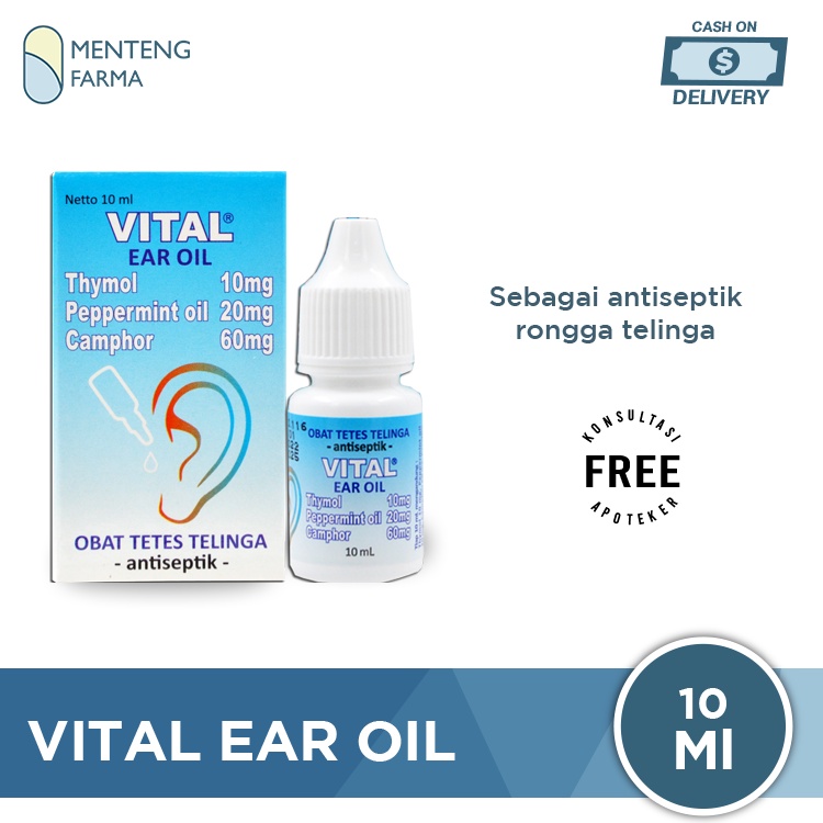Vital Ear Oil merupakan obat tetes telinga yang berfungsi membersihkan kotoran yang mengendap pada telinga di bagian dalam. Endapan kotoran yang tidak dibersihkan dengan benar, maka akan menimbulkan rasa gatal, nyeri, bahkan dapat terjadinya infeksi atau peradangan pada telinga.