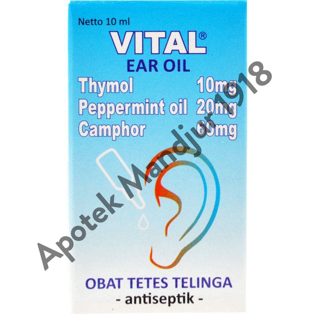 Komposisi yang terdapat dalam Vital Ear Oil digunakan sebagai antiseptik pembersih organ telinga bagian dalam, menghambat pertumbuhan bakteri dan jamur yang bersarang di dalam telinga, hingga mengurangi rasa gatal dan nyeri akibat kotoran yang mengendap di dalam telinga.