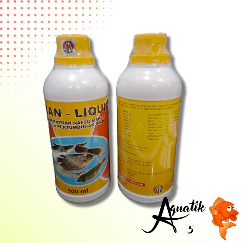Vikan Liqud adalah suplemen modern yang diformulasikan khusus untuk merangsang nafsu makan ikan dan memacu pertumbuhan ikan yang sudah terbukti di berbagai negara Asia. INDIKASI : • Meningkatkan nafsu makan ikan • Mengatasi stress karena perubahan cuaca dan sakit • Meningkatkan kekebalah dan daya tahan ikan • Merangsang pertumbuhan ikan • Meningkatkan metabolisme pencernaan KOMPOSISI : • Vitamin A 1.000.000 CU • Vitamin D3 200.000 CU • Vitamin K3 2.000 mg • Vitamin E 3.000 mg • Vitamin B1 6.000 mg • Vitamin B2 4.000 mg • Vitamin B6 6.000 mg • Vitamin B12 1.500 mg • Vitamin C 10.000 mg • Ca-d Panthotherak 4.000 mg • Folis Acid 3.000 mg • Biolin 4.000 mg • Inositol 4.000 mg • Nicolinic Acid 2.500 mg • Chloride 10.000 mg • L-lisyn 10.000 mg • DL-Nethiomine 10.000 mg • Excepiend Add Clites DOSIS : • Pertumbuhan normal : 1 tutup botol per kg pakan • Pertumbuhan terlambat : 2 tutup botol per kg pakan KOCOK DAHULU SEBELUM DIGUNAKAN CARA PENGGUNAAN : - 1 tutup botol VIKAN LIQUID dilarutkan dengan gula pasir 1 sendok the sebagai perekat - Campurkan dengan pellet sampai merata - Dibiarkan kering selama 30-60 menit - Jangan dijemur dibawah sinar matahari