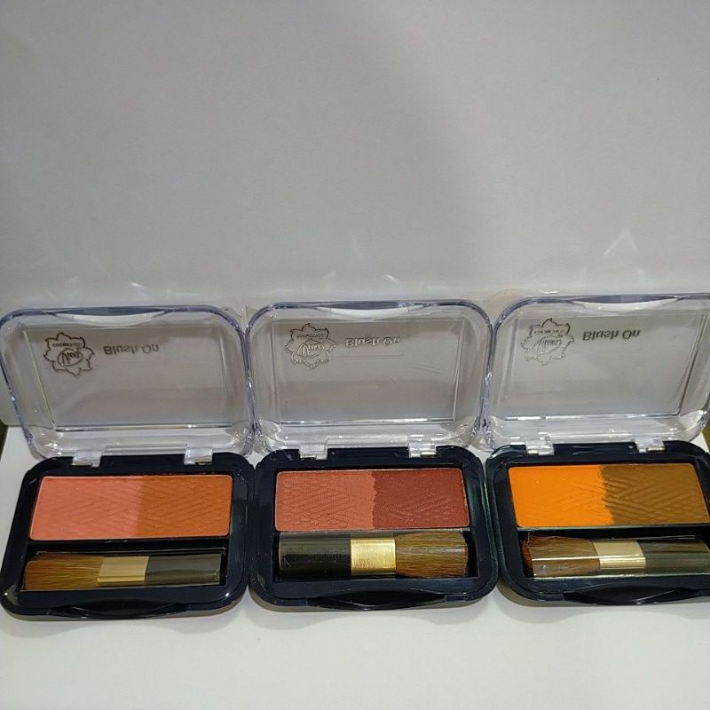 Blush On dengan kombinasi dua warna yang serasi dan mudah diaplikasikan. Membantu menyempurnakan bentuk wajah agar wajah tampak lebih segar.