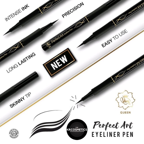 VIVA QUEEN Perfect Art Eyeliner Pen solusinya. Bentuk kemasan dan aplikator yang menyerupai pena membuat produk ini mudah digunakan. Cukup dengan sekali gores, VIVA QUEEN Perfect Art Eyeliner Pen ini mampu menghasilkan warna hitam yang intens.