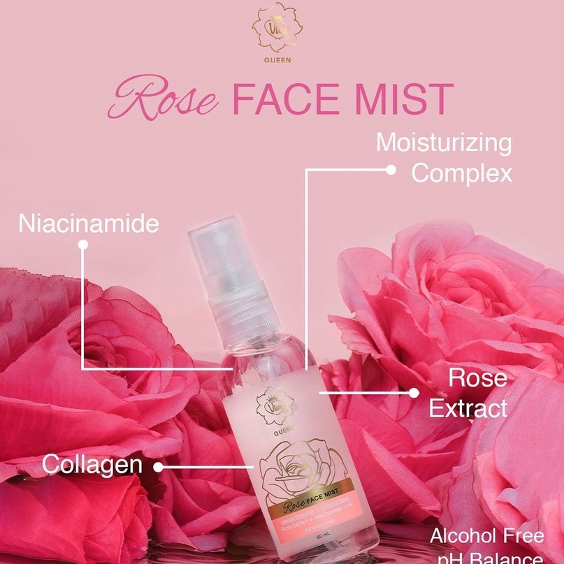 Viva Queen Rose Face Mist 60 ml Viva Queen kini menghadirkan Viva Queen Rose Face Mist sebagai salah satu rangkaian perawatan kulit wajah. Dengan kelembutan aroma mawar yang memanjakan kulit wajah saat digunakan. Viva Queen Rose Face Mist ini diformulasi dengan pH balance & alcohol free, sehingga nyaman digunakan kapanpun anda ingin mengembalikan kesegaran dan kelembapan kulit wajah anda.