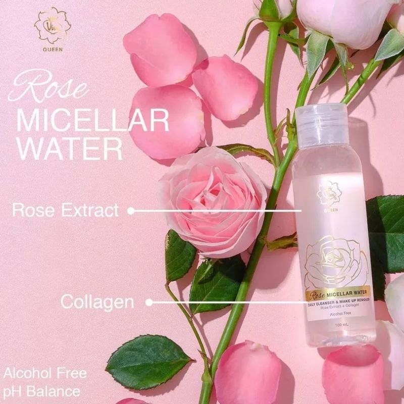 Viva Queen Rose Micellar Water yang efektif digunakan sebagai pembersih make up yang dapat digunakan untuk seluruh wajah, bagian mata hingga bibir sekalipun. Berbasis aqua, sehingga terasa ringan, sejuk dan nyaman digunakan. Teknologi 'cleansing micellar' dari Viva Cosmetic ini mampu mengangkat partikel debu, kotoran, hingga make up waterproof dari permukaan kulit dengan tuntas tanpa perlu dibilas.