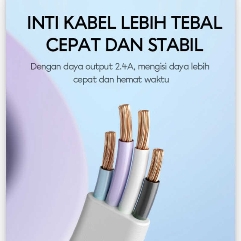 Spesifikasi Output : 2.4A Support : Fast charging & data Warna : Hitam,hijau,Biru, Merah dan orange Lenght : 100cm Material : PVC