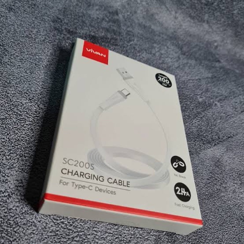 Spesifikasi: Brand : Vivan Type : SC200S Interface : USB to Type-C Color : White Material: bare copper wire + copper foil wire Voltage: 5V Current: 2.4A(MAX) Outer mold: white + gray PVC Cover: White PVC Length: 2 Meter USB plug times: 10000 times Type C plug times: 10000 times Salt spray test: 24H Bending test: 4000?+ High and low temperature storage: minus 20 plus 70 degrees