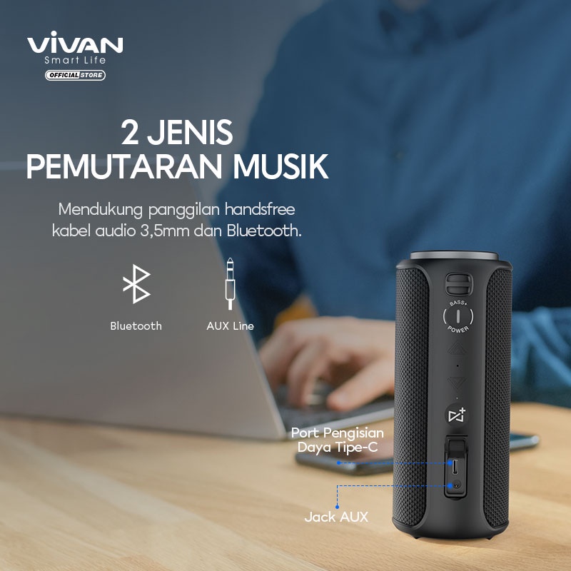 Detail VIVAN Bluetooth Speaker VS30 Portable Waterproof IPX7 Subwoofer
