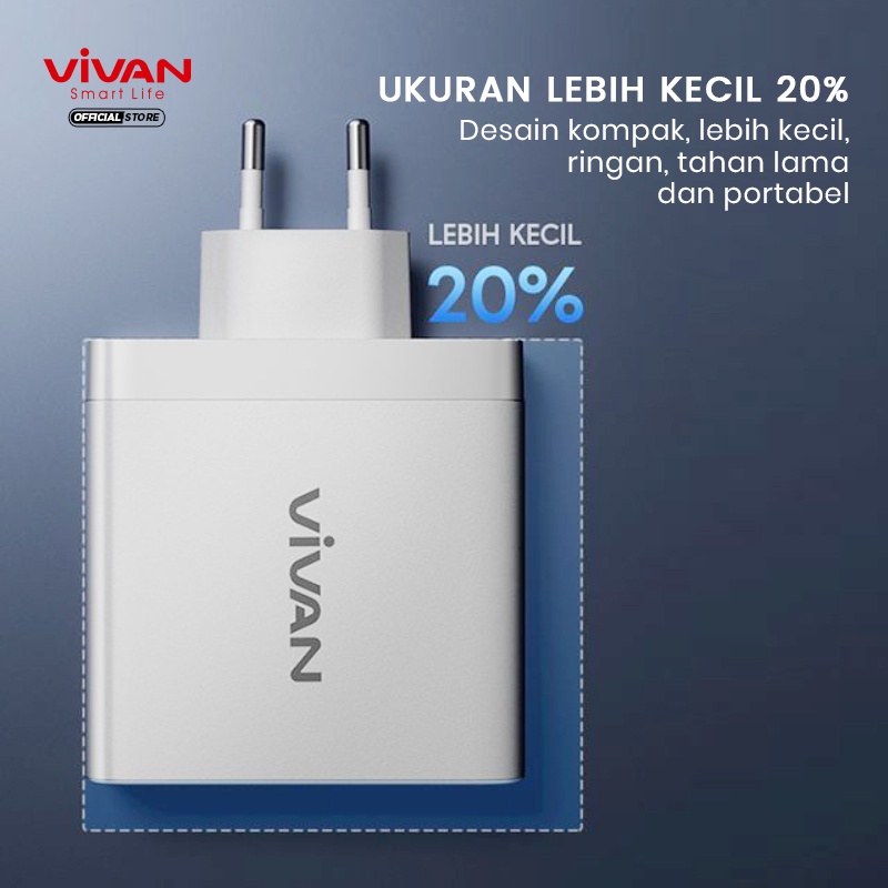 Detail VIVAN Charger GaN04 Fast charging 140W 5A 3 Output PD QC Port Quick Charge Support Notebook iPhone 13-Garansi Resmi 1 TAHUN