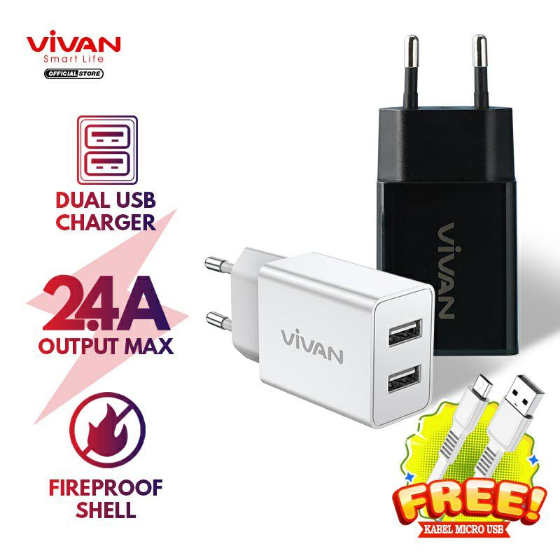 Vivan DD02 Port USB Charger Free Kabel Micro USBVivan DD02 Port USB Charger Free Kabel Micro USBVivan DD02 Port USB Charger Free Kabel Micro USB