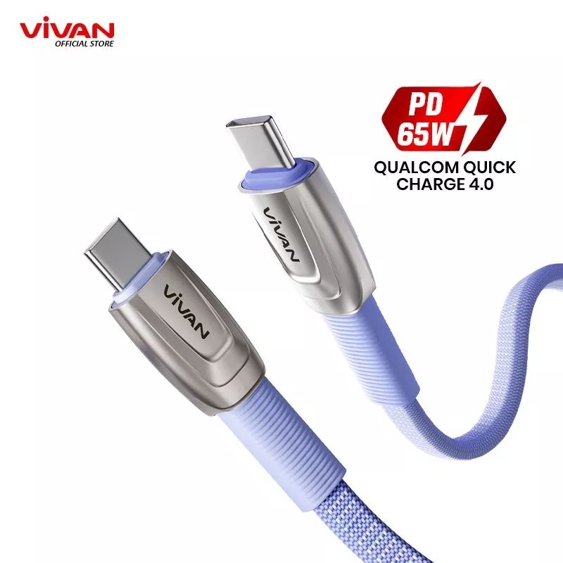 Detail Vivan Fast Charging BTK-CC Kabel Data Type-C to C 65w / BTK-CL Type-C to Lightning 27W Purple