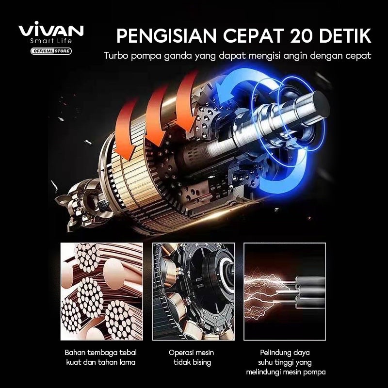 VIVAN Inflator Tire VTI02 Pompa Ban Mobil Portable Elektrik LCD Display Air Compressor Mini Serbaguna Garansi Original Resmi
