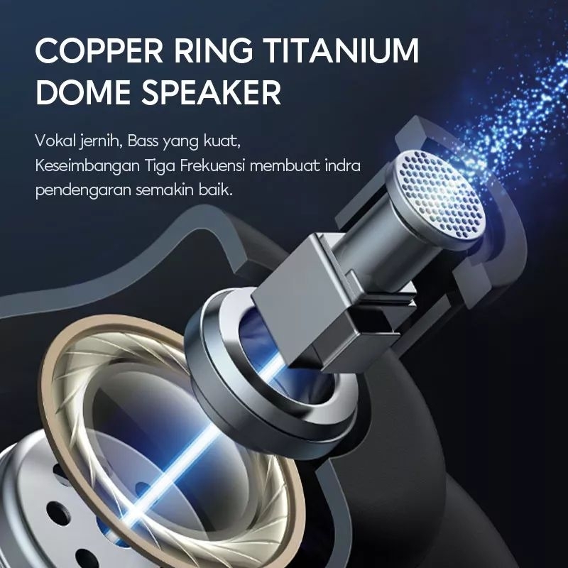Keunggulan: 1. Tampil atraktif dengan 2 lampu LED warna-warni. 2. Suara jernih dengan efek bass maksimal. 3. Dilengkapi fitur Feed Forward Noise Reduction untuk meredam kebisingan. 4. Playtime hingga 40 Jam (7 Jam daya tahan baterai earbud + 33 Jam daya charging case) untuk nikmati musik dan konten digital lain dalam durasi yang lebih lama. 5. Bluetooth 5.2 membuat koneksi lebih stabil, pairing lebih mudah dan konsumsi daya yang rendah. 6. Tahan air dan keringat dengan standar waterproof IPX4. 7. Hadir dengan material berkualitas dan desain earbud Semi-in-ear. 8. Pengisian daya menggunakan port Type-C