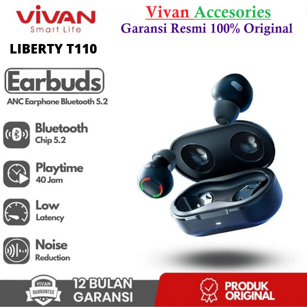 Spesifikasi: Brand : VIVAN Item Code : Liberty T110 Color : Black Tipe Koneksi : Wireless Impedansi : 32Ohms Minimum Frekuensi : 20Hz