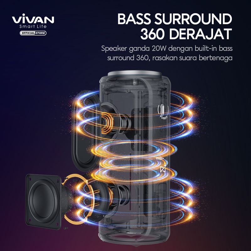 Detail VIVAN Speaker Bluetooth VS30 Portable Waterproof IPX7 Subwoofer 20W 15 Hours ORI