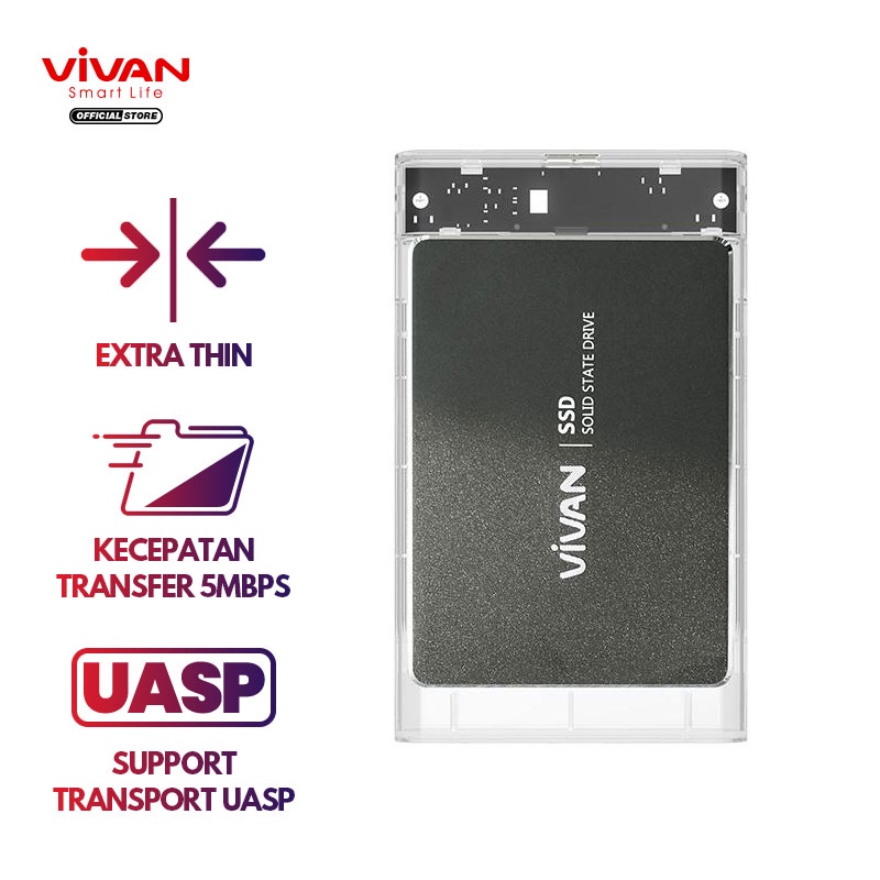 Komputer & Aksesoris > Penyimpanan Data > Casing Hard Disk & Docking > VIVAN SSD Case Transparent External Hard Drive Enclosure USB 3.0 TO 2.5 INCH Garansi Resmi VSHD1