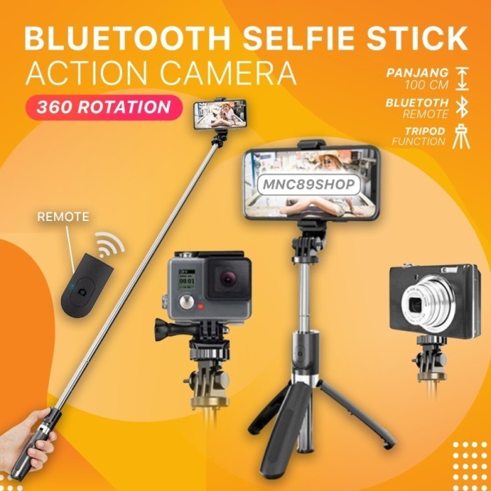 S03 3IN1 Tongsis Bluetooth + Tripod Selfie stick mendukung ios android 3 in 1 Wireless Bluetooth Selfie Stick untuk iphone/Android/Huawei Lipat Genggam Monopod Jarak Jauh Tripod Mini yang Dapat Diperpanjang