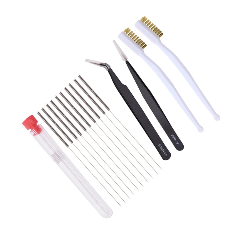 Kit Pembersih Nozel Printer 15pcs 3D 0.2-0.4mm Pinset Pembersih Nozel 0.2mm Fitur: Isi paket: Pembersihan nosel baja tahan karat 10pcs 0.2-0.4mm, 1 kotak penyimpanan jarum pembersih, 2 pinset, Kompatibilitas: Aksesori pembersih nosel printer 3D ini untuk sebagian besar nozel printer 3D, untuk MK8, MK10, dll. Bahan berkualitas tinggi: Pembersihan nosel printer 3D ini terbuat dari stainless steel, sikat kawat ini terbuat dari kawat tembaga, tahan lama dan fleksibel, tidak mudah pecah dan berkarat, mudah disimpan, dan dapat memberi Anda Perkhidmatan jangka panjang. Dengan perkhidmatan jangka panjang. Alat Praktis: Pembersihan nosel stainless steel ini cocok untuk perawatan nozel yang lembut dan tempat yang sulit dijangkau-. Kuas kawat tembaga ini cocok untuk membersihkan industri yang berbeda, seperti bagian baja-, mesin-, bagian logam yang belum selesai-, cat, dll., tanpa merusak permukaan-; Dua jenis pinset disediakan, termasuk lurus dan Lengkung-, yang sangat cocok untuk pemeliharaan nosel dan pembersihan bahan dukungan berlebih.