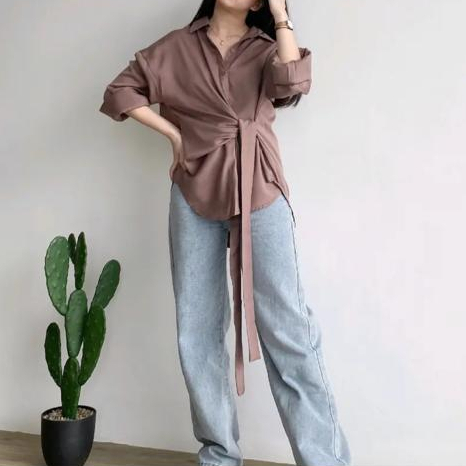 Detail Vivian Shirt Shakila - Kemeja Wanita / Kemeja Lengan Panjang / Kemeja Ikat Tali Korean Style