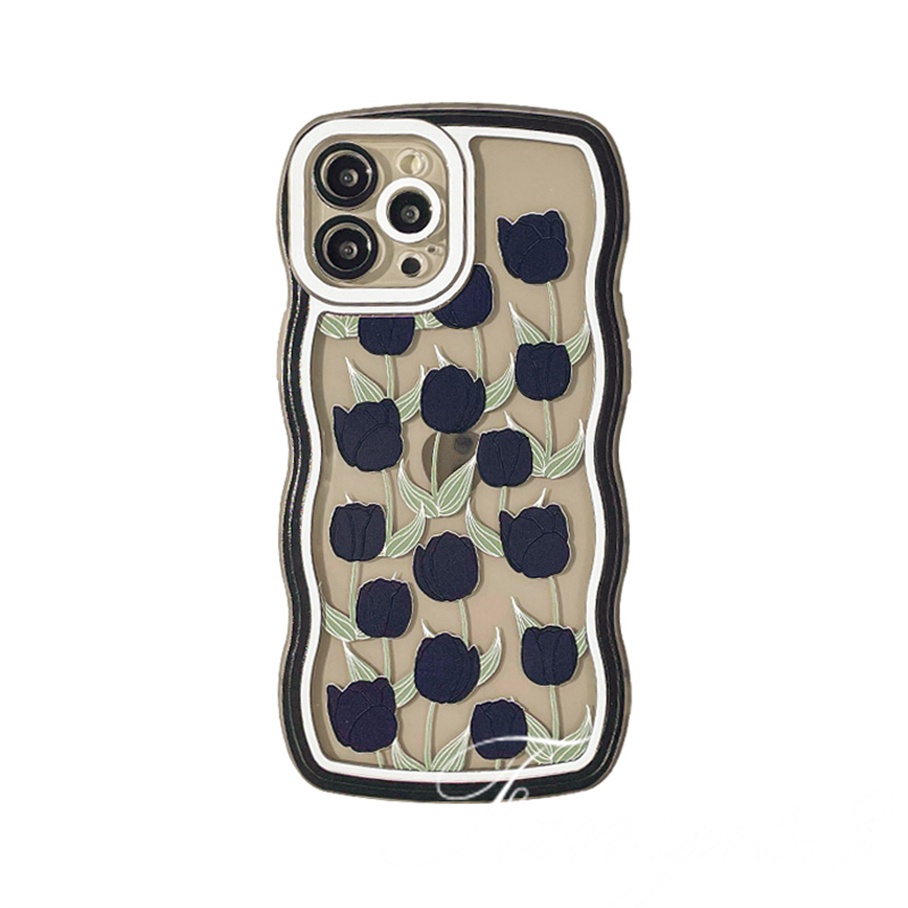 Detail Vivo Y02 Y35 Y16 Y22 Y02s Y15A Y15S V25e Y22s Y21 Y21s Y20 Y20s Y12s Y33s Y1s Y17 Y12 Y15 Y11 Y91C Y30i Y51 Y31 V23e V21 V20SE Ins Bunga Tulip Hitam Casing Ponsel TPU Soft Cover