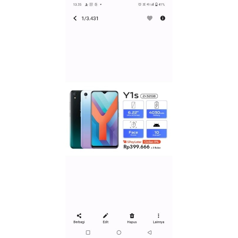 Detail VIVO Y20 Y15s 3/64 GB | Y15s 3/32 | Y01 2/32 | Y1s 2/32 GARANSI RESMI VIVO INDONESIA