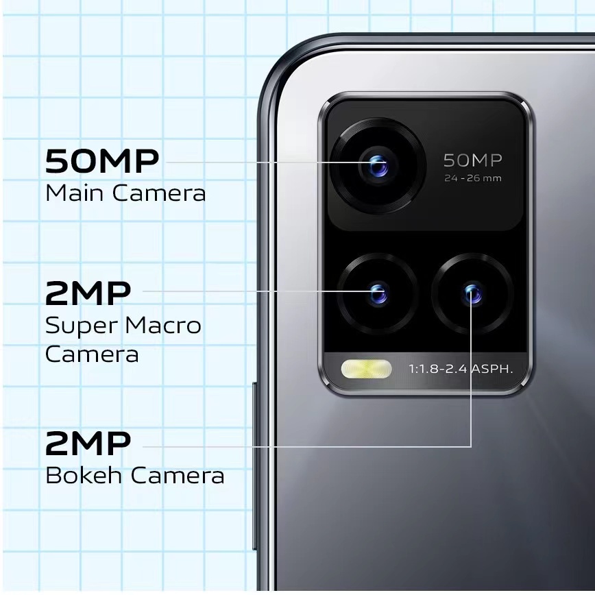 MAIN CAMERA Dual 50 MP, f/1.8, (wide), PDAF 2 MP, f/2.4, (macro) 2 MP, f/2.4, (depth) Features LED flash