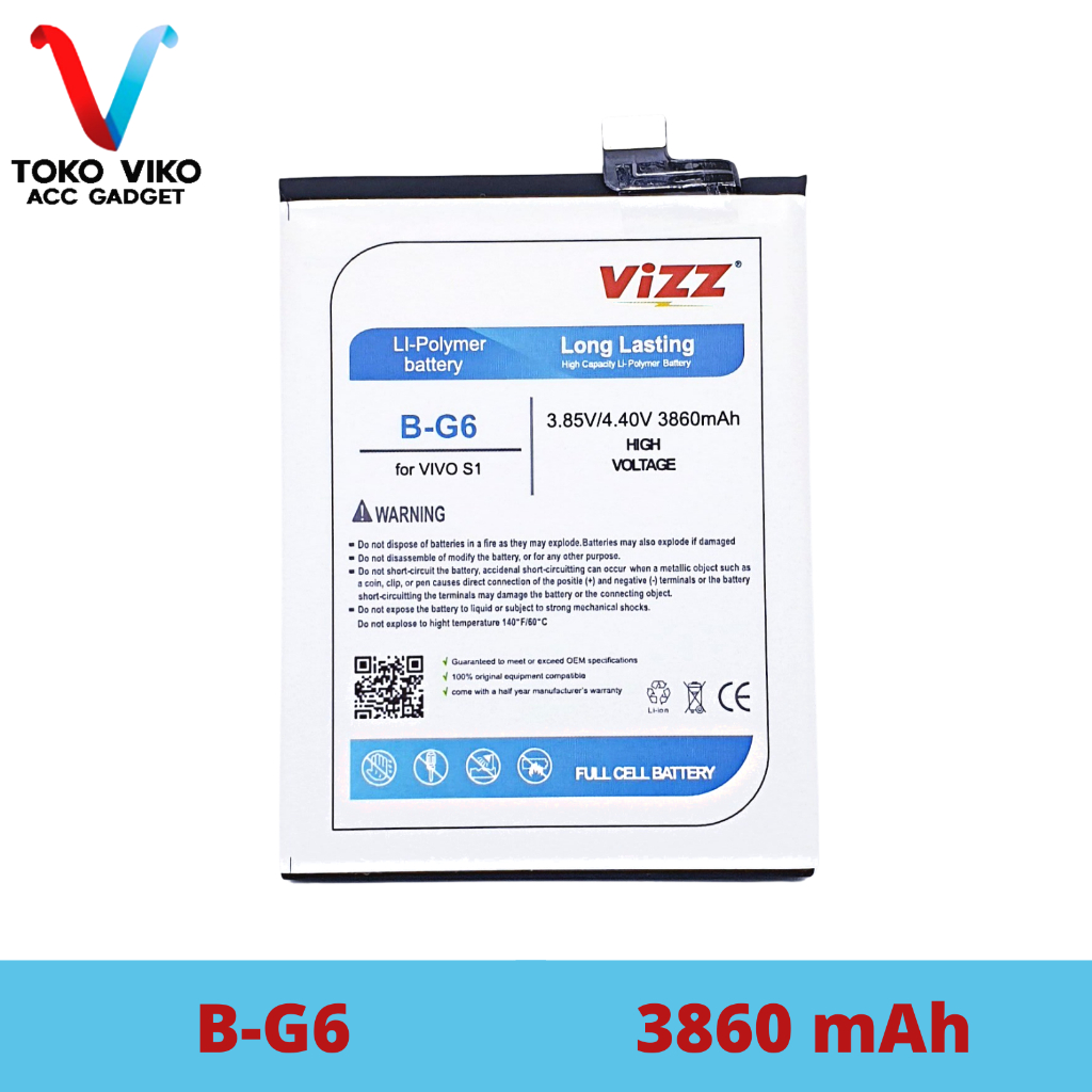 Spesifikasi : - Kode Baterai : B-G6 - Kompatibel dengan : Vivo S1 - Double IC Protection - Real Capacity - Fullcell Battery - No Pairing (Baterai bisa langsung digunakan) - No Back Door Cover (Tidak perlu ganti casing belakang) - Ukuran, ketebalan, dan dimensi baterai sama dengan original - Voltase : 3.85V/4.40V - Garansi 6 Bulan (S&K Berlaku)