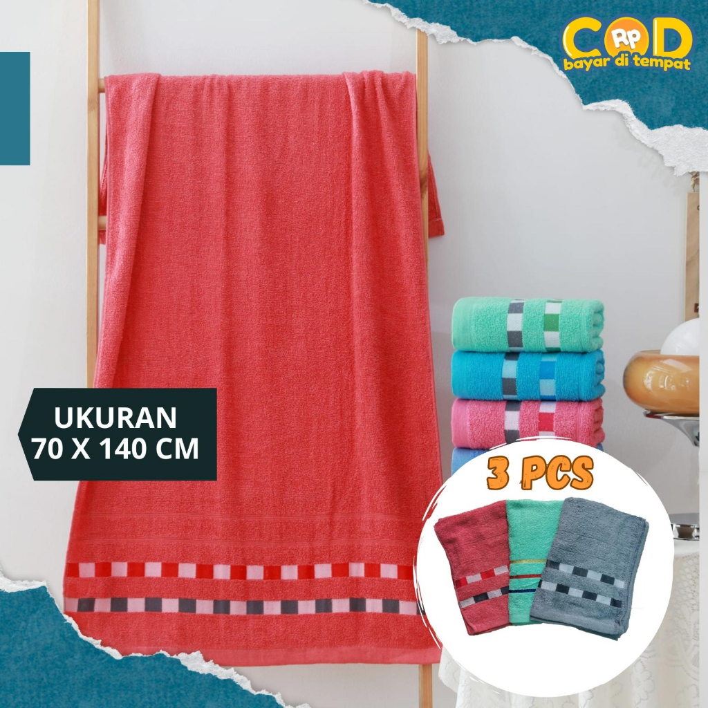 Paket Handuk katun 3 PCS Super Halus, Super Menyerap. Bahan : Cotton Ukuran 70 x 140cm. Gramasi -+350 untuk ketebalan. Jika kurang tebal, bisa cari handuk gramasi yang lebih tinggi. Untuk penyerapan sangat baik.