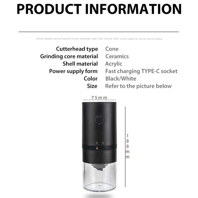 Alat ini berfungsi untuk menggiling / memotong biji kopi menjadi bubuk secara elektrik, tanpa menggunakan tenaga tangan atau penumbuk manual. Penggiling kopi ini dapat menjaga rasa kopi dengan baik, karena menggunakan inti keramik sebagai material penggiling. Grinder ini jauh lebih praktis jika dibandingkan dengan grinder-grinder kopi konvensional. Fitur Grinder Portabel Grinder ini menggunakan baterai tanam berkapasitas 1250 mAh yang bisa Anda isi ulang menggunakan port USB type C. Dengan desain portabel, Anda dapat menggiling biji kopi dimanapun dan kapapun.