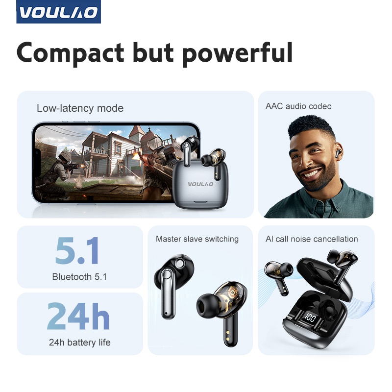 Detail VOULAO VL5 TWS Earphone headset bluetooth 5.3 Wireless Gaming Earbuds Latensi rendah Mendukung Android/IOS With Microphone HIFI Stereo
