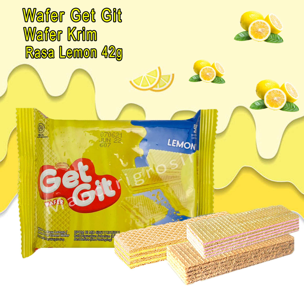 VARIAN RASA : -Wafer Get Git / Wafer Cool Choco / Dengan Krim Cokelat Mint / Wafer Renyah -Wafer Get Git / Wafer Sweet Corn / Rasa Jagung Manis / Wafer Renyah -Wafer Get Git / Wafer Grilled Barbeque / Rasa Sapi Panggang -Wafer Get Git / Wafer Krim Cokelat / Rasa Cokelat -Wafer Get Git / Wafer Krim / Rasa Lemon