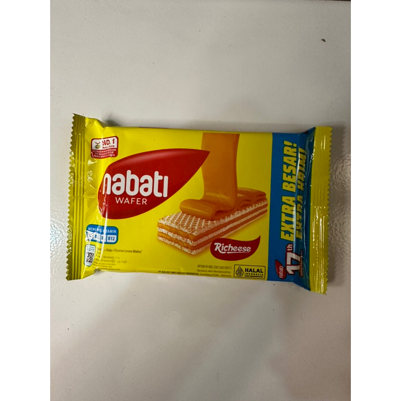 Wafer Nabati 43g ada 2 variant rasa Richeese dan richoco, Wafer dengan krrim keju dan krim fokrlat enak renyah harga ekonomis, sudah ada hallal Cocok di jadikan cemilan keluarga