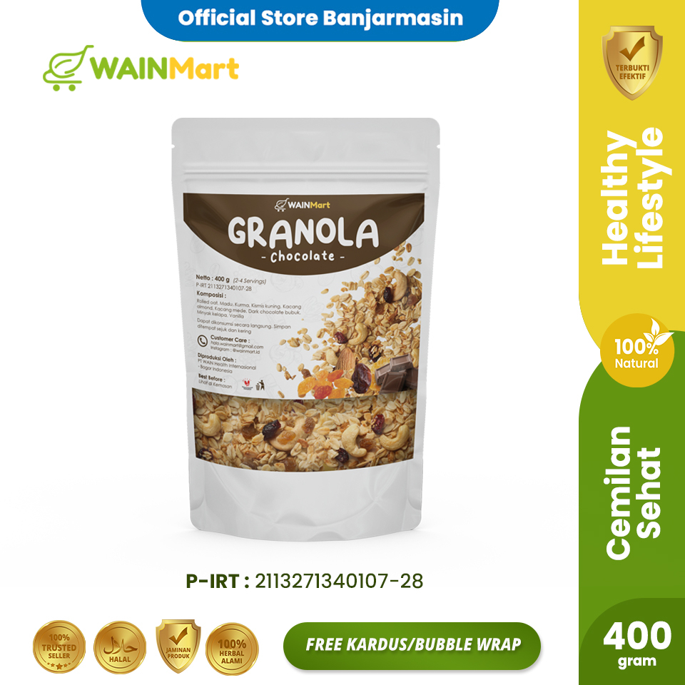 "Wainmart Granola Sereal Sehat Snack Diet Berat bersih : 250 gram dan 400 gram No. P-IRT 2113271340107-28