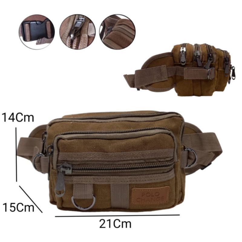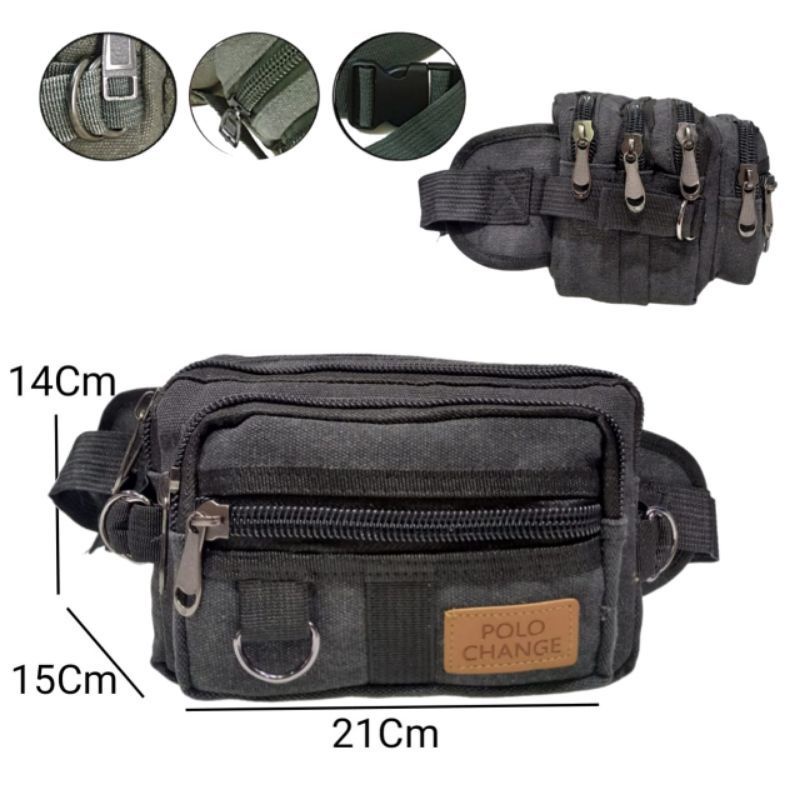 Detail Waistbag - Tas pinggang kanvas pria waistbag