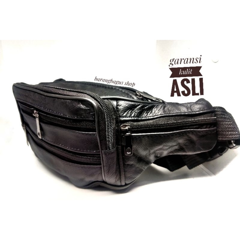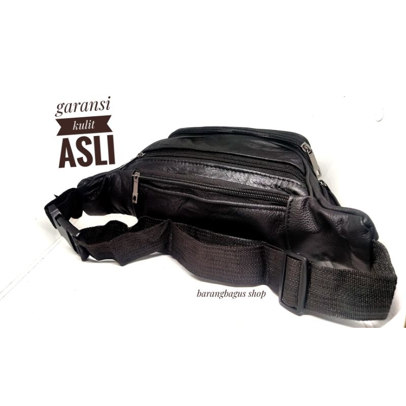 Detail Waistbag tas pinggang pria cowok kulit asli polos tanpa merk tanpa logo ukuran sedang