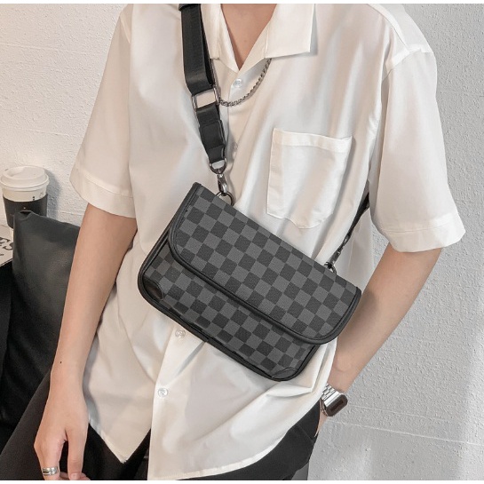 bahan : kulit pu diameter : 24x15x3cm produk : original impor warna : spesial hitam putih kotak kotak slempang model terbaru , sangat keren untuk jln2 ,,,produk barang premium,,