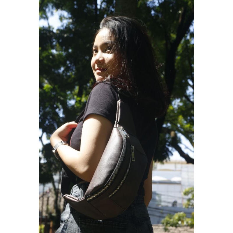 Tas Selempang Pria/Wanita Kulit Sintetis Waistbag Unisex Tas Pinggang Outdoor Waterproof Original Tu7uh Store Lokal Slingbagkonveksi Production
