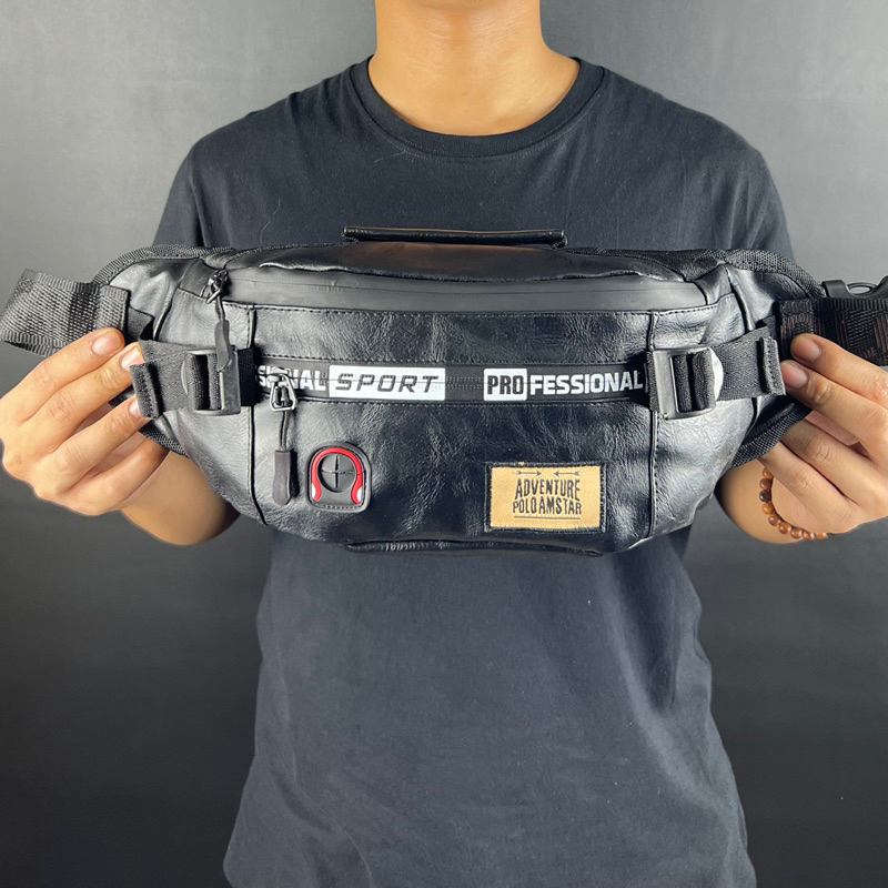 Detail Waistbag Waterproof Bahan Kulit PU Leather Polo Amstar Original Tas Pinggang Tas Selempang Bahu