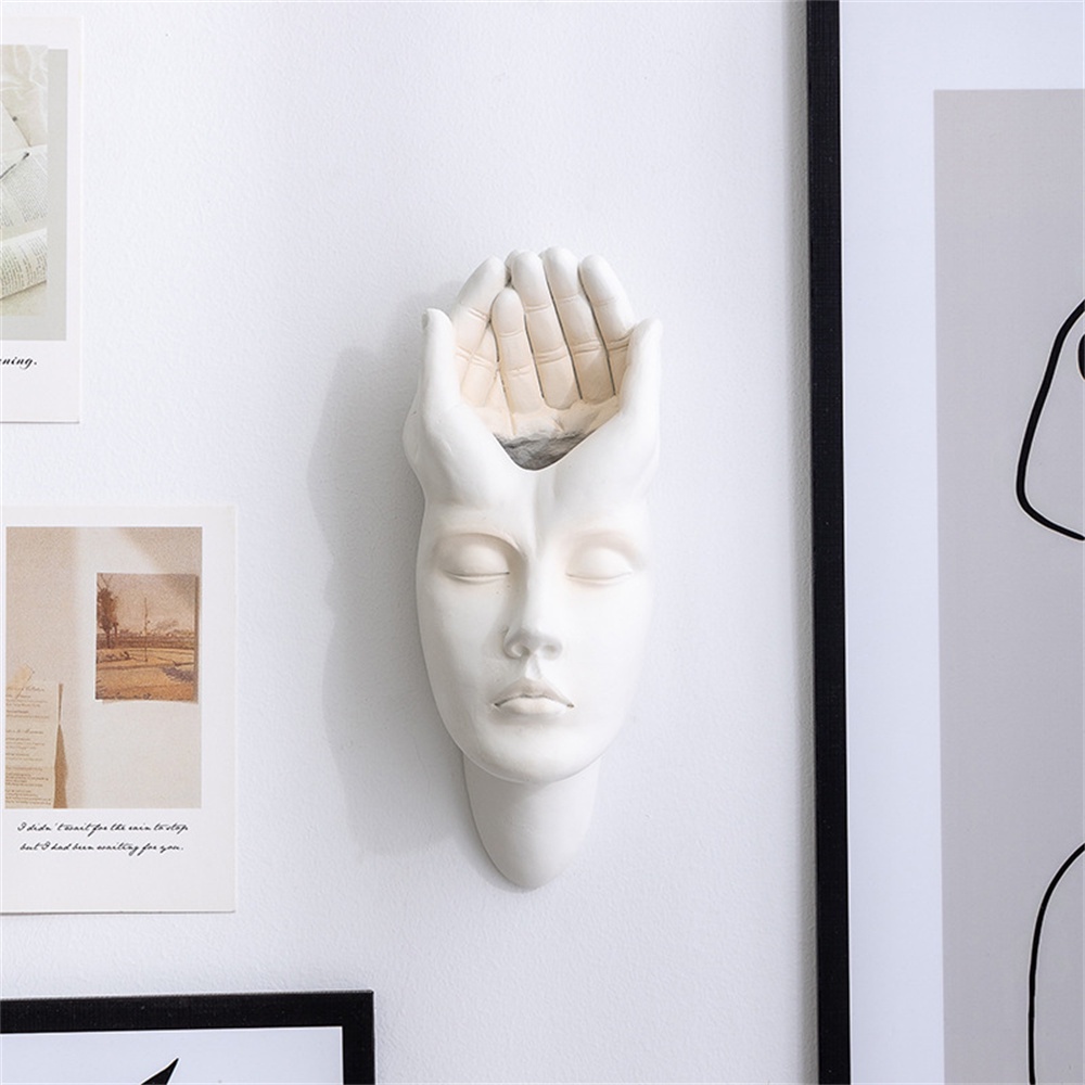 Perlengkapan Rumah > Dekorasi > Vas & Bejana > ღ Wajah Manusia Dinding Pot Bunga Manusia Ekspresi Wajah Patung Abstrak Dinding Resin Patung Seni Kreatif Kerajinan Ornamen Rumah dekorasi
