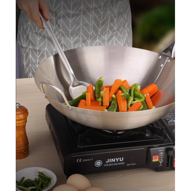 wook pan stainlees Spesifikasi Produk : * Material : Stainless steel dijamin Tebal (Food Grade) Wajan penggorengan Tebal dan anti lengket cocok untuk Rumah tangga dan restoran ataupun jualan kaki lima seperti nasi goreng dan sebagainya