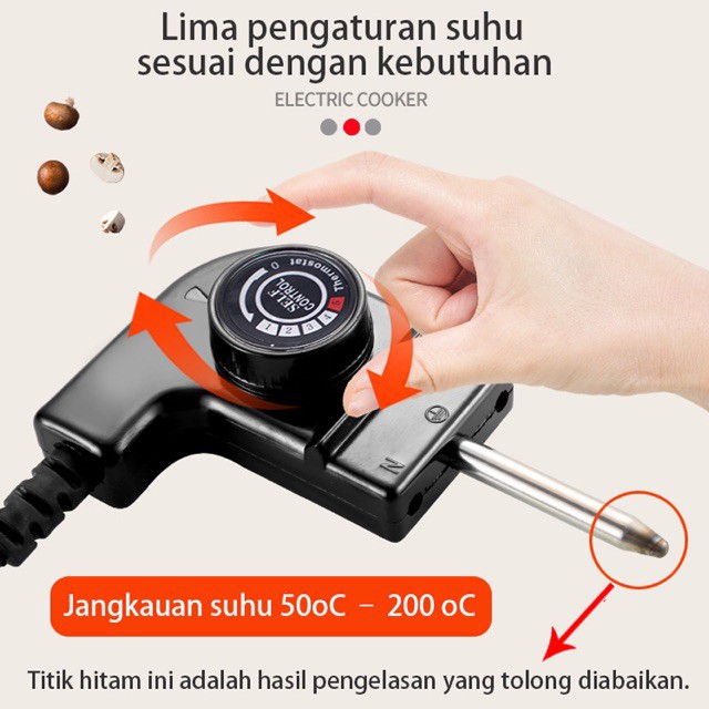 Metode bersih: Masukkan sedikit sabun atau air ke dalam wajan untuk membersihkan, lalu keringkan dengan kain. Power: 1200W REAL 600-800 W Kualitas bahan: paduan logam dan ABS Berat: 2 (KG) Pemanasan / fitur pot: Teppanyaki, goreng, panci panas, direbus, mengkukus digoreng, direbus, digoreng. Tegangan: 220V metode kontrol: tombol push Nilai Daya (W): 1200
