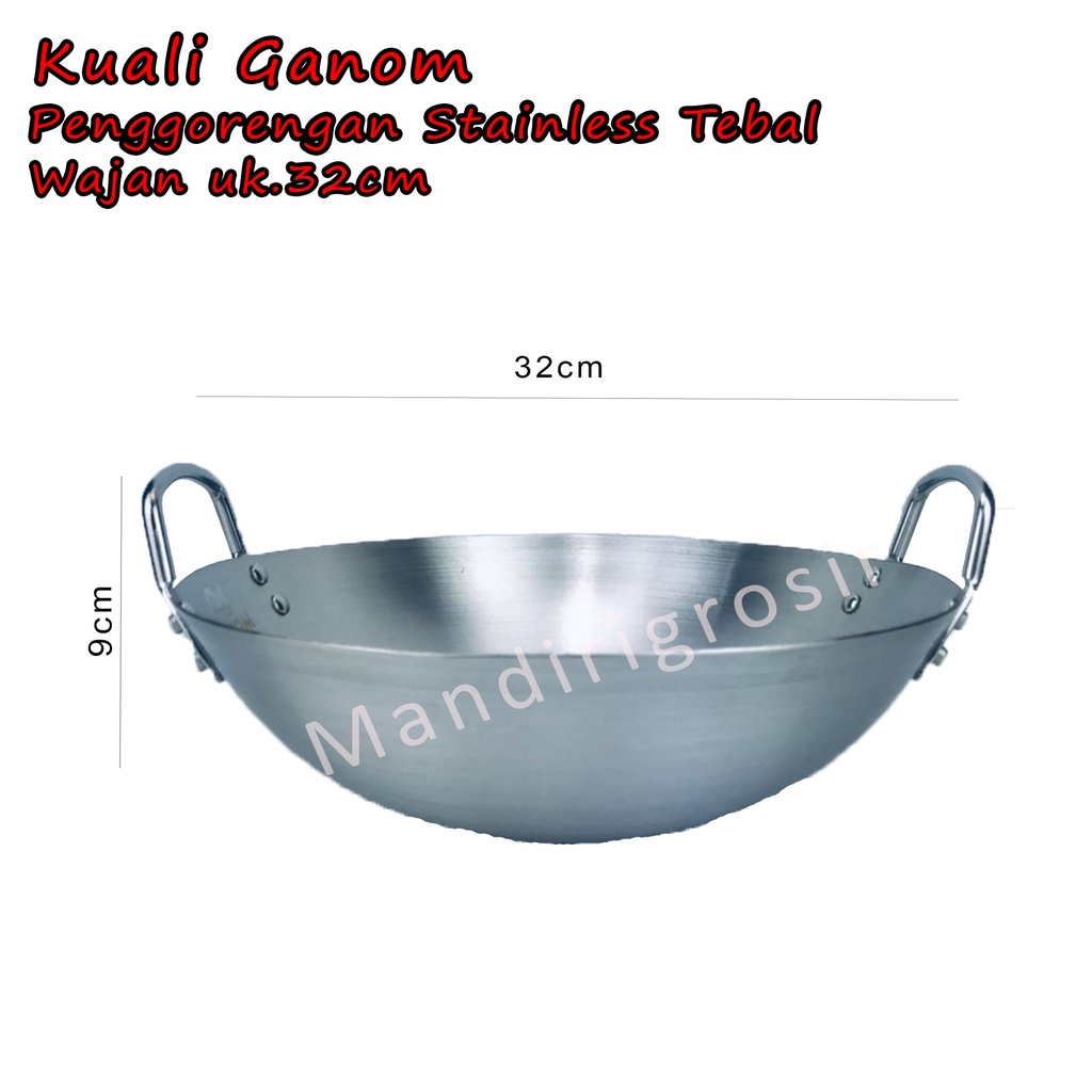 Kuali atau wajan stainless ini memiliki ketebalan yang berkualitas sangat bagus sehingga produk lebih Tahan Lama dan Awet. Merupakan kuali yang anti magnet karena mempunyai kandungan nikel yang tinggi dan juga anti karat namun tetap tergantung bagaimana cara pemakaian dan pemeliharaan produk masing-masing. Cocok untuk penggunaan di rumah, restoran maupun cafe,wajan stainless steel tebal kuat anti pecah. Ukuran Diameter 32x32cm dan tinggi 9cm Kode : 11820703