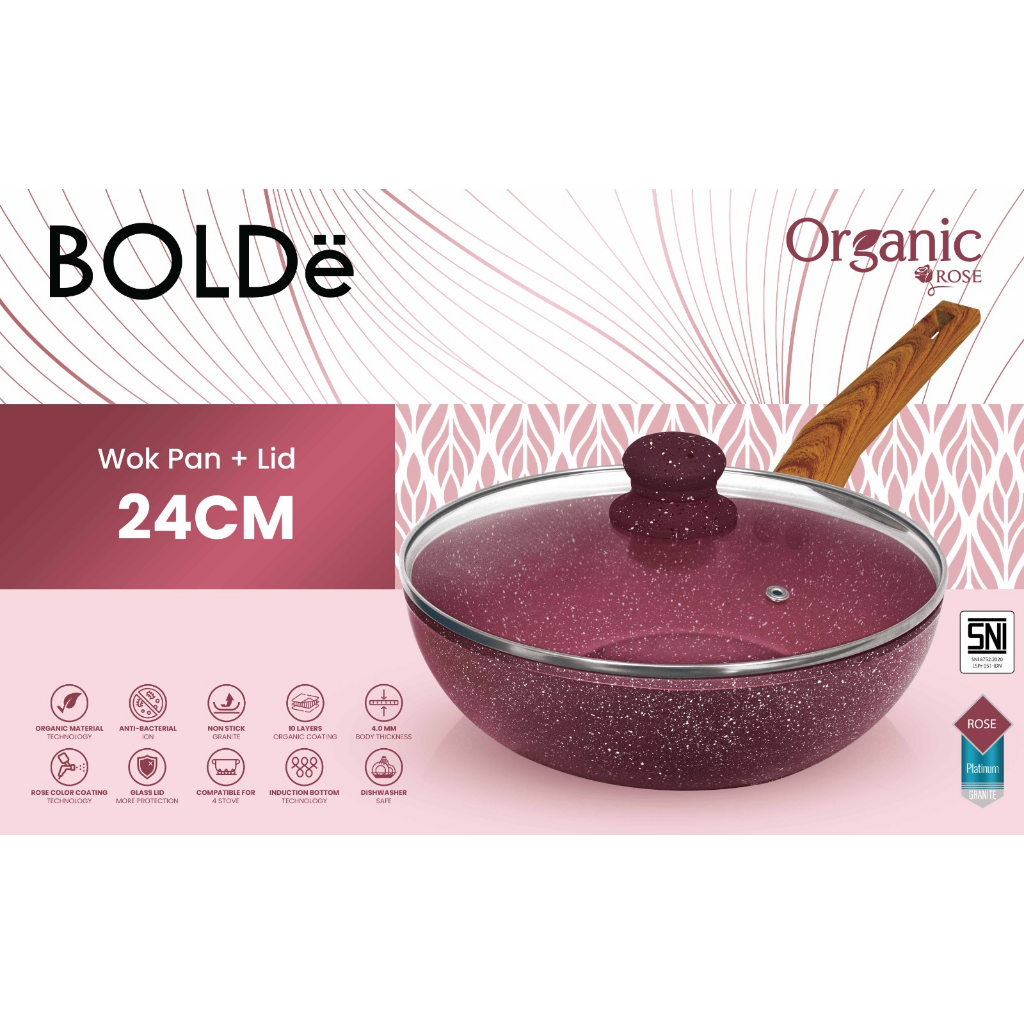 Detail Wajan Penggorengan BOLDe Super Pan ORGANIC ROSE WOK PAN 24 cm + Glass Lid