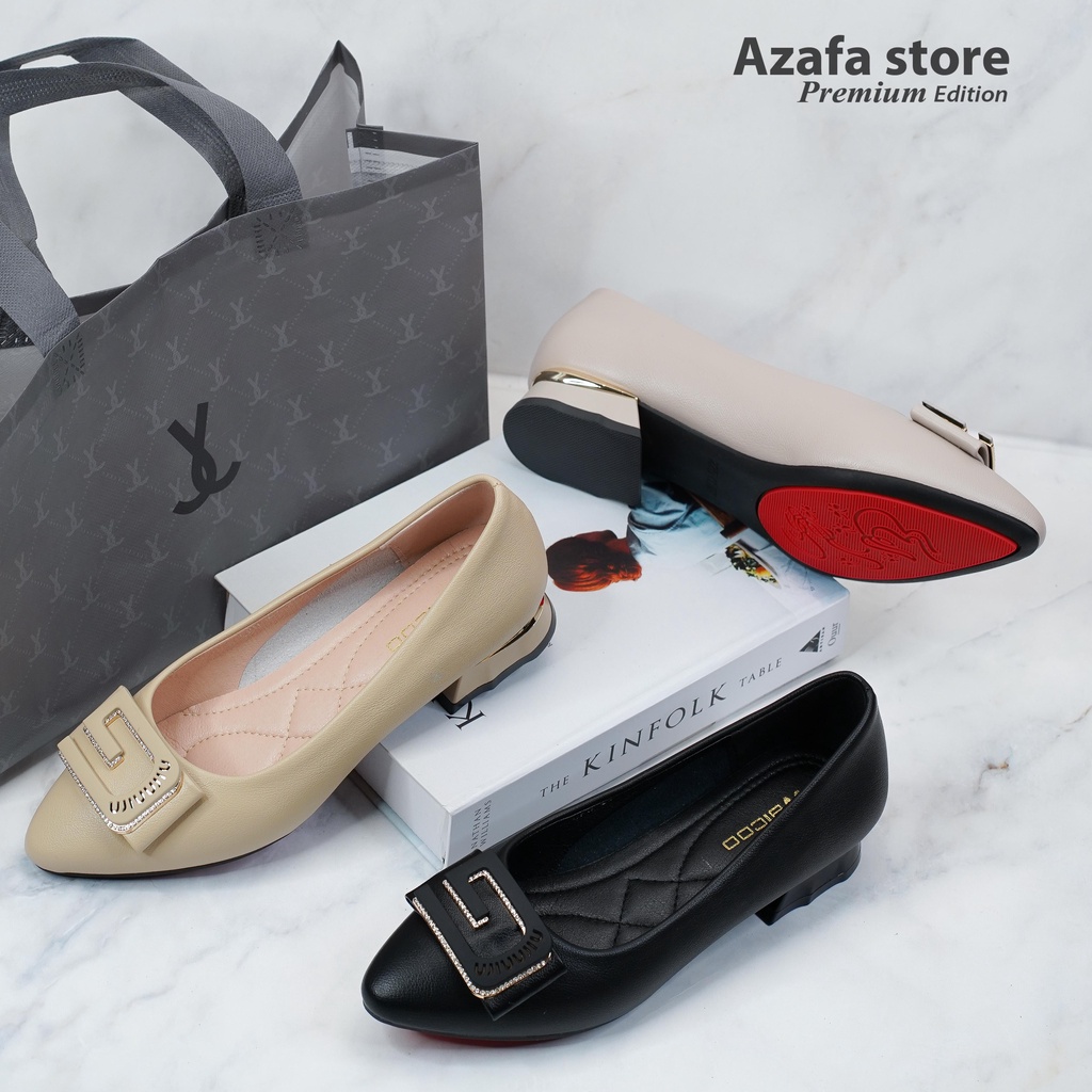 Kelebihan Produk : 1. Berbahan sintetis premium dengan alas super empuk tidak akan kempes saat digunakan karena menggunakan double foam yang premium 2. Bentuk hak kokoh, dijamin tidak akan goyang dan menjaga keseimbangan saat dipakai 3. Sol menggunakan non-slip sol, tidak akan licin dan akan nyaman saat dipakai seharian 4. Dapat digunakan untuk acara formil atau non-formil karena Heels ini super comfy dengan tinggi heels 5 cm 5. Tersedia 3 variasi warna, yaitu Black, Cream dan Mocca yang bisa menyesuaikan kebutuhan Tampilannya simple, mudah di mix & match outfit apapun