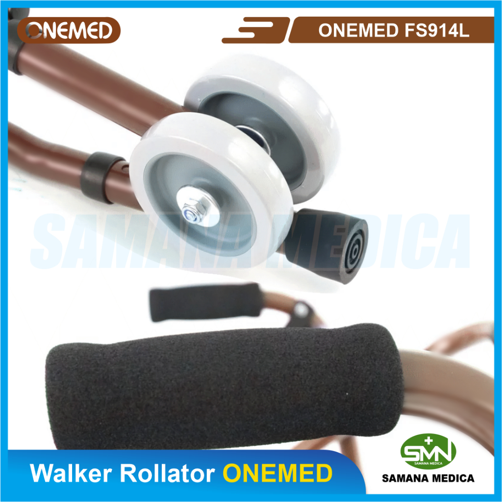 Rollator ONEMED FS 914 L merupakan alat bantu jalan yang digunakan oleh pasien dan orang tua. Rollator ini dilengkapi dengan bangku duduk dan roda, berbeda dengan tipe rollator lainnya rollator ini tidak ada keranjang. Roda yang di gunakan rollator ini juga berukuran kecil seperti walker. Selain digunakan untuk latihan jalan pasien pasca stroke rollator ini juga digunakan untuk pasien patah tulang / amputasi ataupun manula sehingga mampu menompang tubuh.